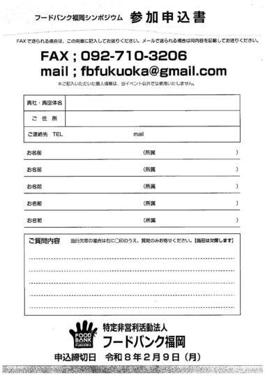 特定非営利活動法人フードバンク福岡 ~シンポジウム開催のお知らせ~ | 特定非営利活動法人フードバンク福岡
